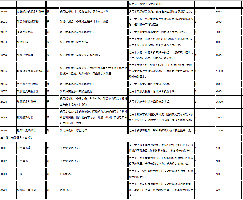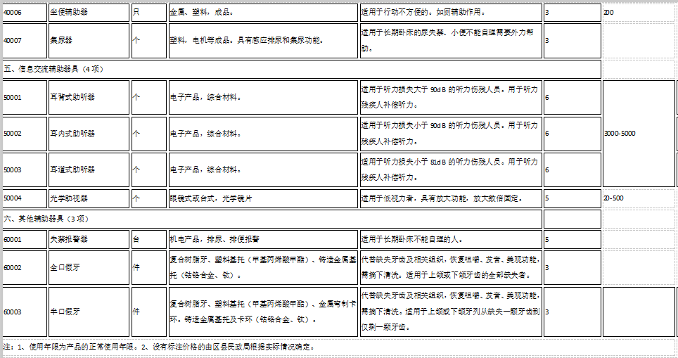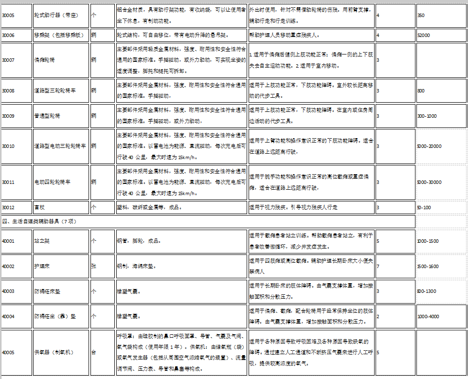 (二)配置范围:包括假肢、矫形器、移动辅助器具、生活自理和防护辅助器具、信息交流辅助器具、其它辅助器具等。