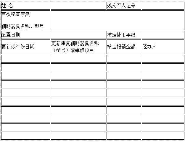 3.《上海市残疾军人配置(更新、维修)康复辅助器记录表》